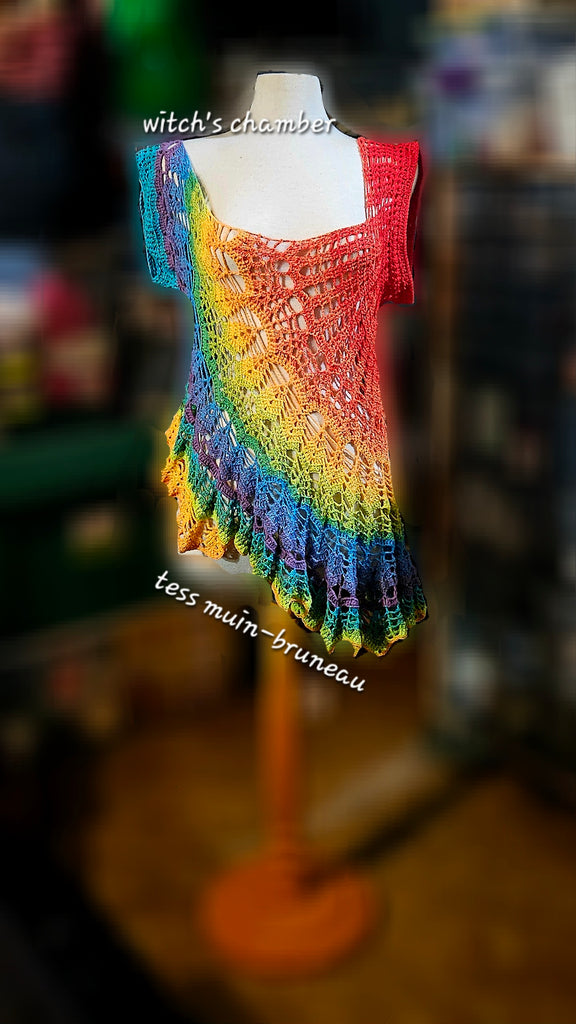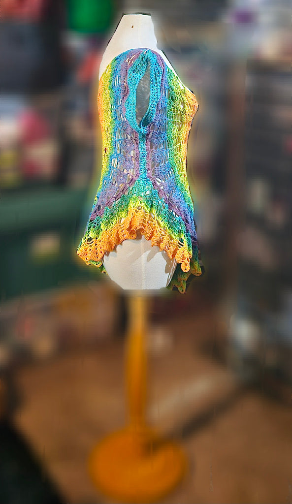 This Rainbow Spiderdream cover up tunic is done in 100% Cotton Yarnart, and is perfect for over a bathing suit, cami or tank top!